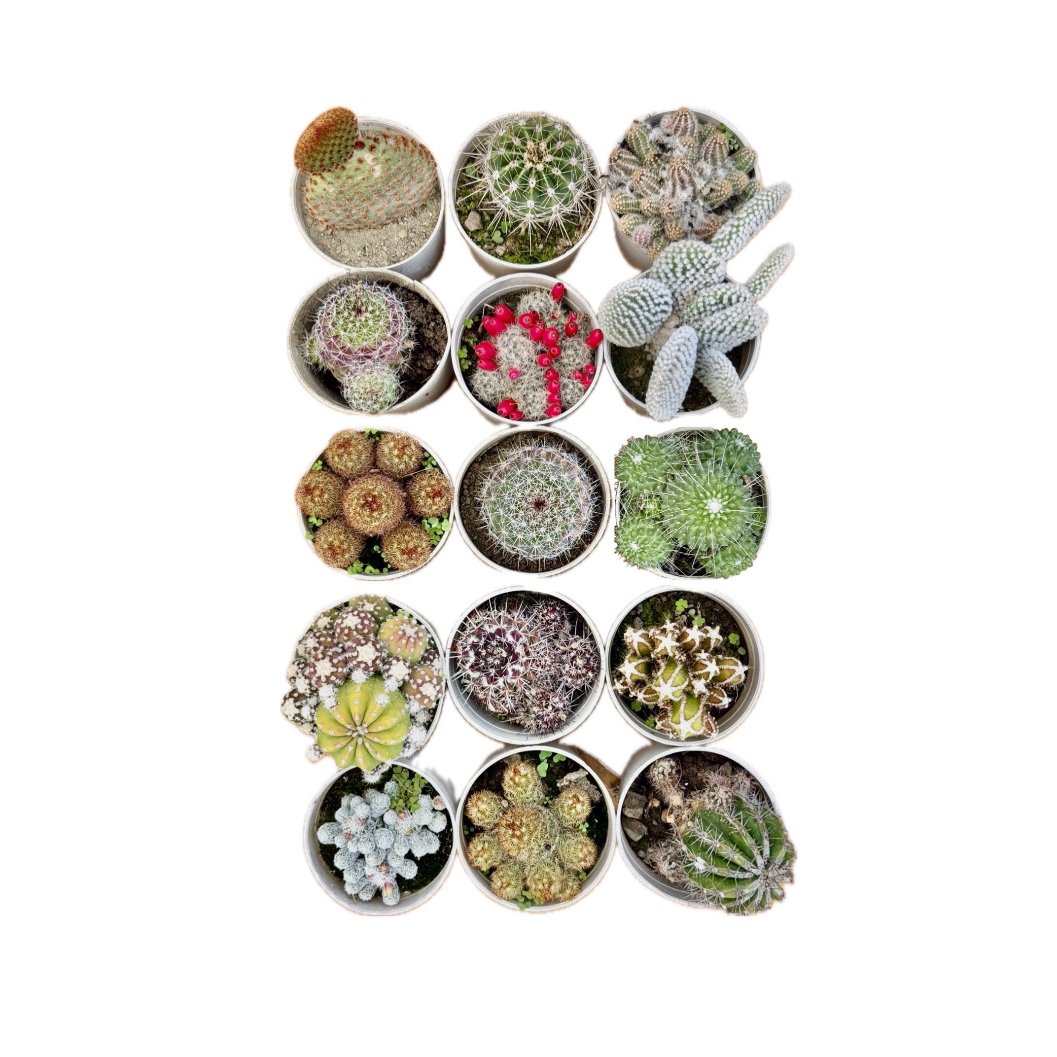 Lady Finger Cactus, Brown Cactus, Star Cactus, Mammillaria Grahamii Cactus, bunny ear cactus red dot, mammillaria cactus, red pearl cactus white, bunny ear cactus white dot, pincushion cactus, old lady cactus, fairy castle cactus , thimble cactus, and Echinopsis Chamaecereus Cactus are the fifteen cactus plants in the combo. This distinctive collection is made to infuse your house or garden with a little bit of toughness and desert charm. Fifteen carefully chosen cactus varieties are included in this collection; they were all picked for their unique forms, hardiness, and low maintenance requirements. Ideal for inexperienced and seasoned gardeners alike, this set is a great way to begin or grow your cactus collection. If you want to give an elegant look to your place, then this combo is the best option for you.